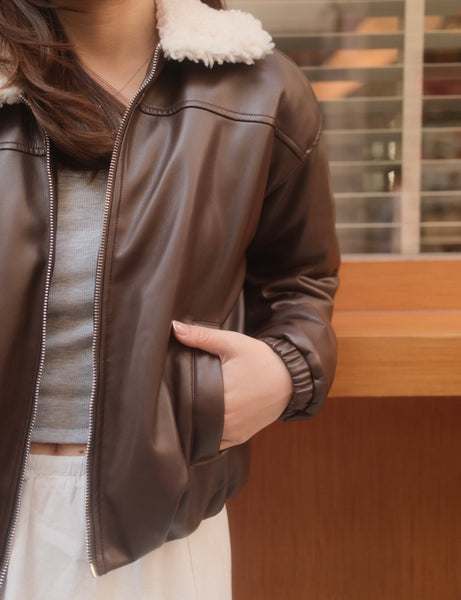 Girls Faux- Fur Collar Vegan Leather jacket