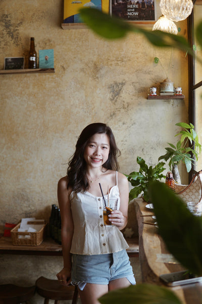 日常米白色吊帶背心