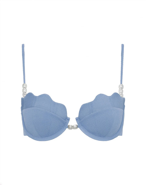 The Sunrise Shell Bikini Top was made for golden hour strolls and daydreaming by the water. This mermaid inspired top features molded shell cups with scallop trim and pearl adornments. Pair it with the Lucia Bikini Bottoms for a dreamy beachside look. You loved this one so much we re-stocked her in a variety of shades including the brand new chambray.