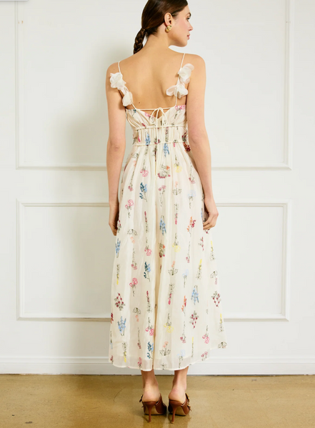 - Lightweight embroidered woven fabric- Self shoulder straps with petal appliqués- Sleeveless- Fully lined