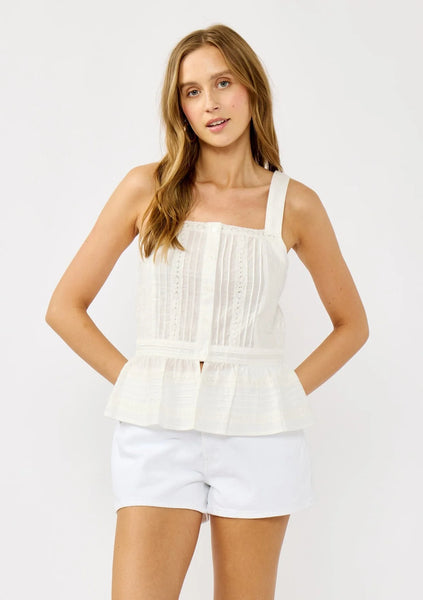 Soft lace accents add a romantic touch to this timeless boho tank. Designed with a flattering peplum silhouette and a secure button-front closure, it's the perfect piece to take you from casual days to dressed-up moments. A warm-weather staple you'll reach for again and again.