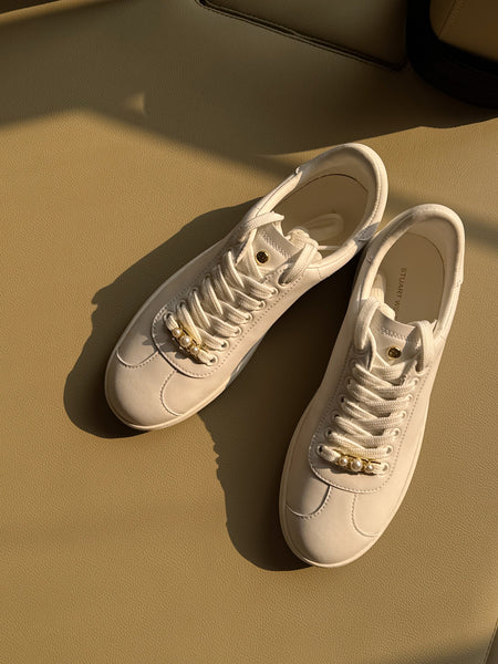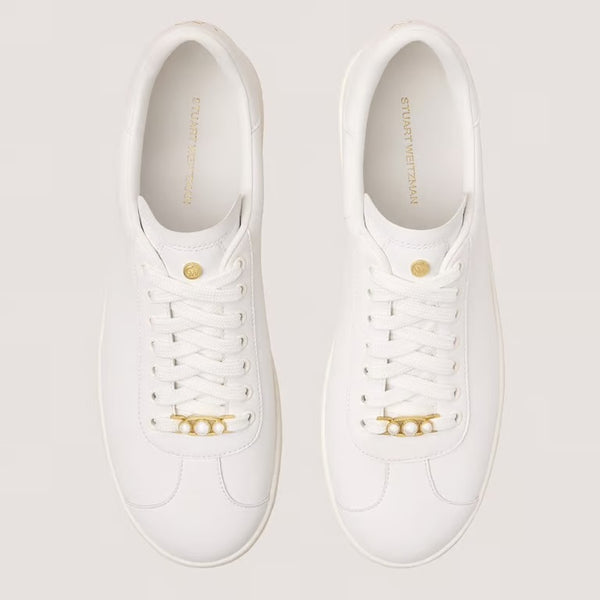 The EMMALINE SNEAKER stands to elevate any off-duty look with its pearl-embellished chain accent. This everyday lace-up is detailed with an SW star logo accent and set on a rubber cup sole.