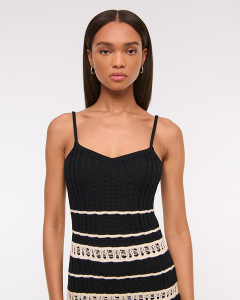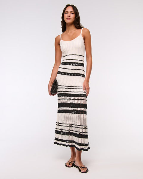 Flattering maxi dress in our elevated sweater-yarn fabric, featuring contrast binding details, square neckline and all-over crochet-style stitching details throughout.
