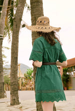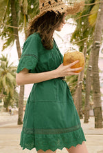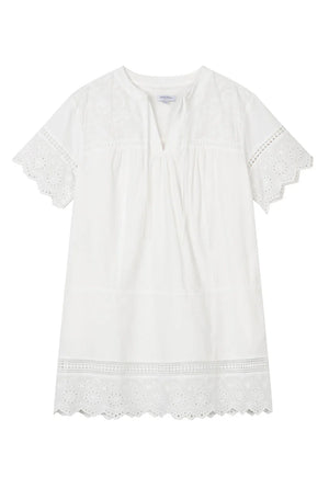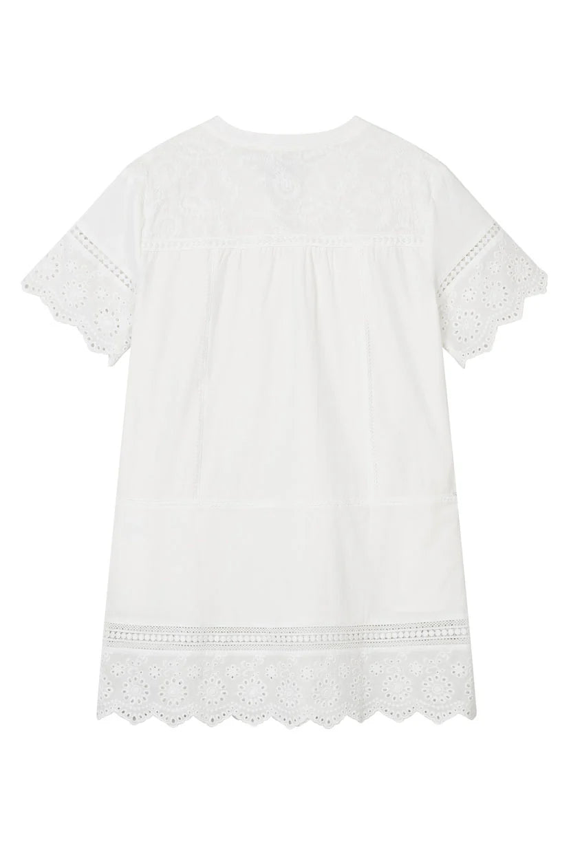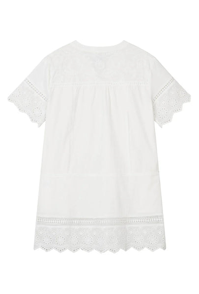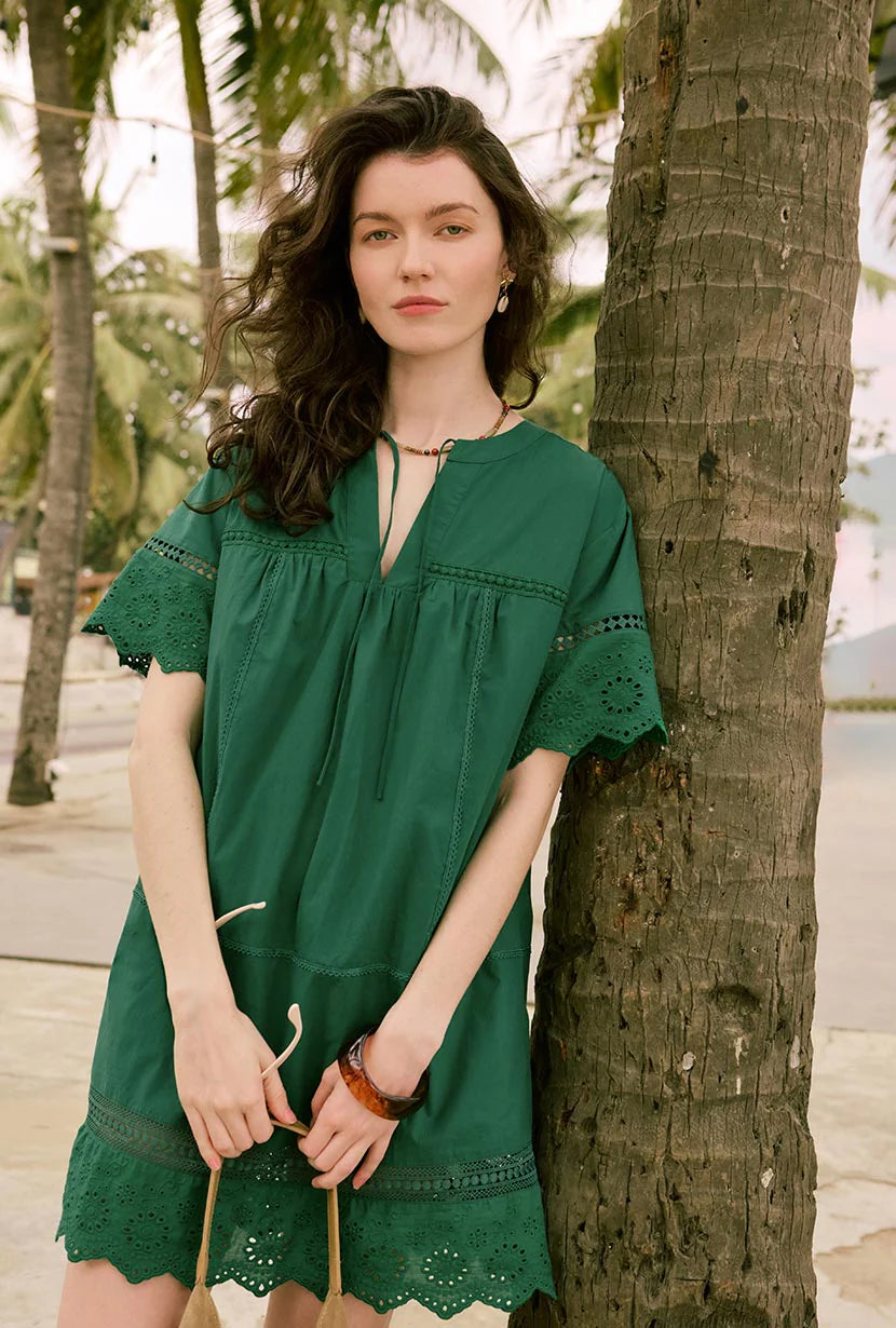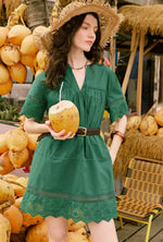 • Sprinkled with breezy crochet trimmings and comes with side pockets