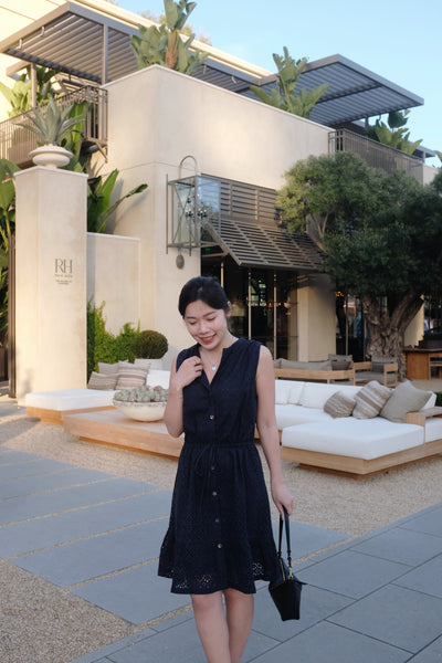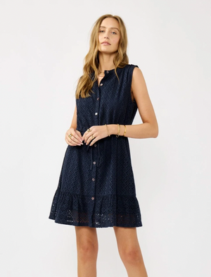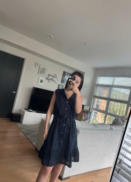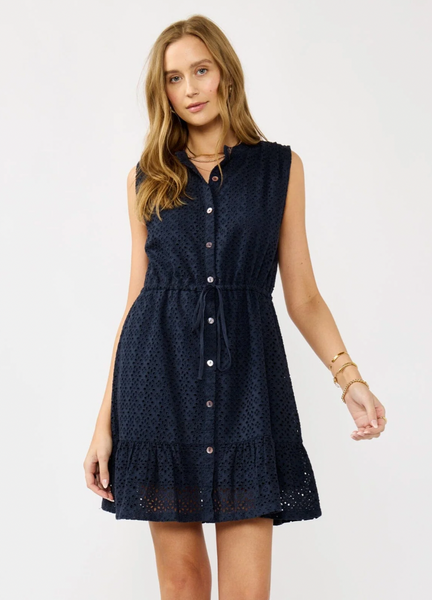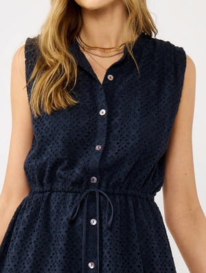 Keep it easy and breezy in our spring eyelet mini dress, featuring a drawstring waist for the perfect fit and a cute button-front detail. Throw on sneakers for a laid-back day or dress it up with heels for a night out.