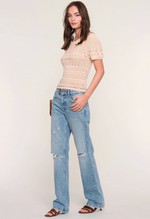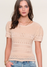 Made from a soft, cotton yarn, the Rye Top is a perfect summer knit. It features a slim fit with pointelle stitching throughout, and a small puff sleeve.