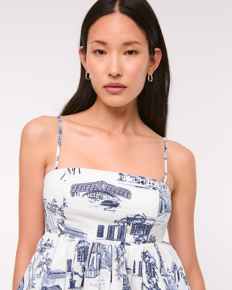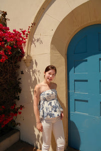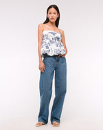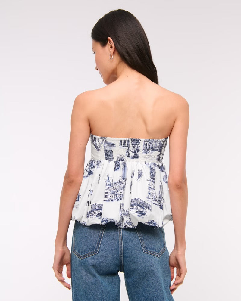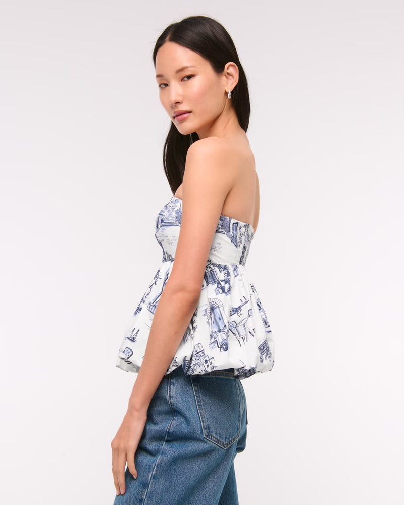 Flattering strapless top in our soft poplin fabric, featuring corset-style seaming details along the bodice and on-trend bubble hem. Imported.